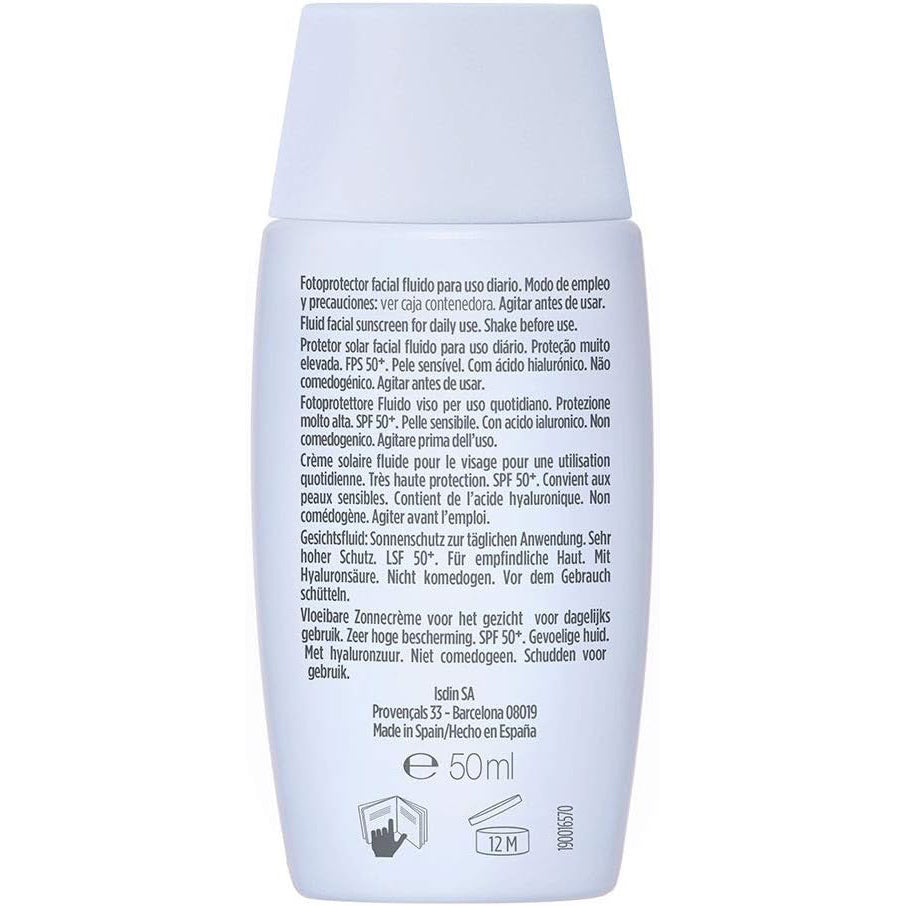 ISDIN Fotoprotector Facial Fusion Fluid SPF 50+ Protector Solar Facial Matificante, con Ácido Hialurónico apto para Piel Sensible, 50ml.