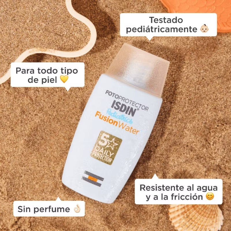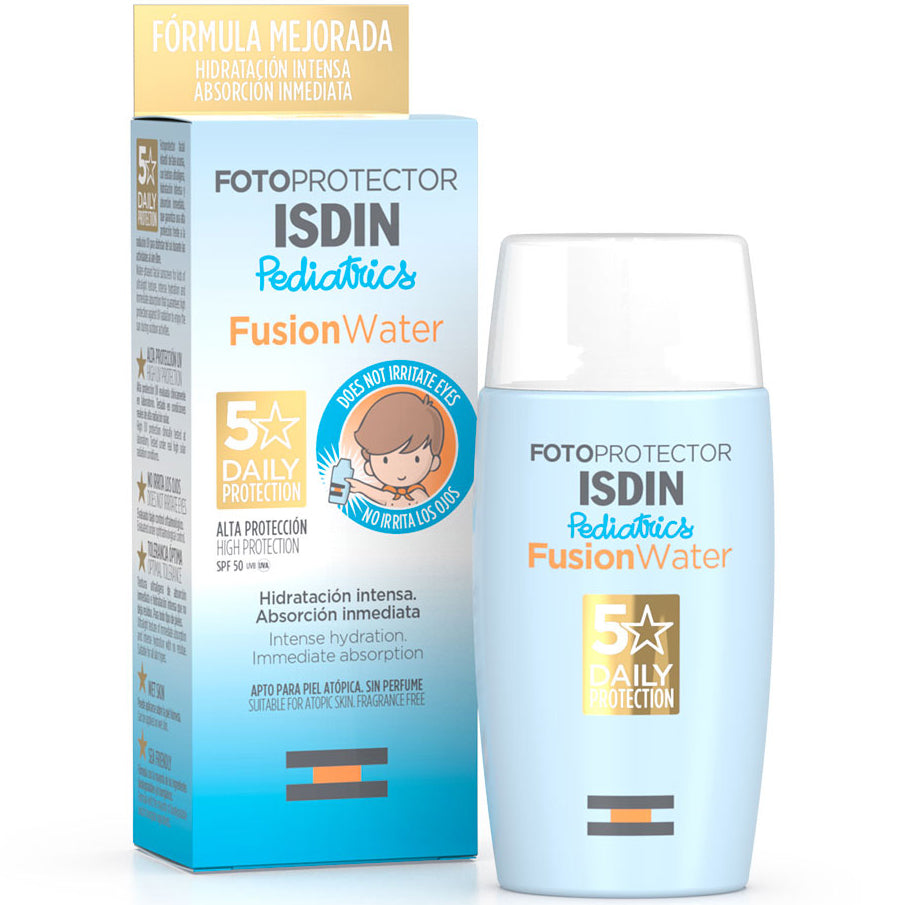 ISDIN Fotoprotector Facial Fusion Water Pediatrico para Niños, SPF50, 50ml.