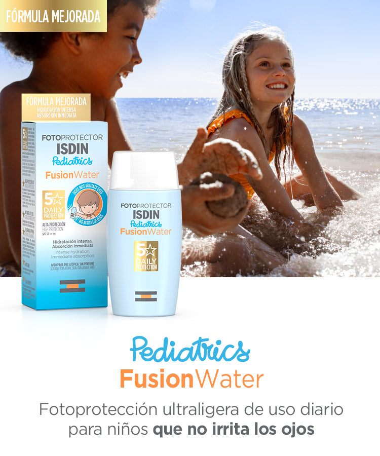 - La fórmula de Fusion Water Pediatrics aporta hidratación intensa y absorción inmediata sin dejar residuo graso, proporcionando una sensación de frescor y acabado sedoso.