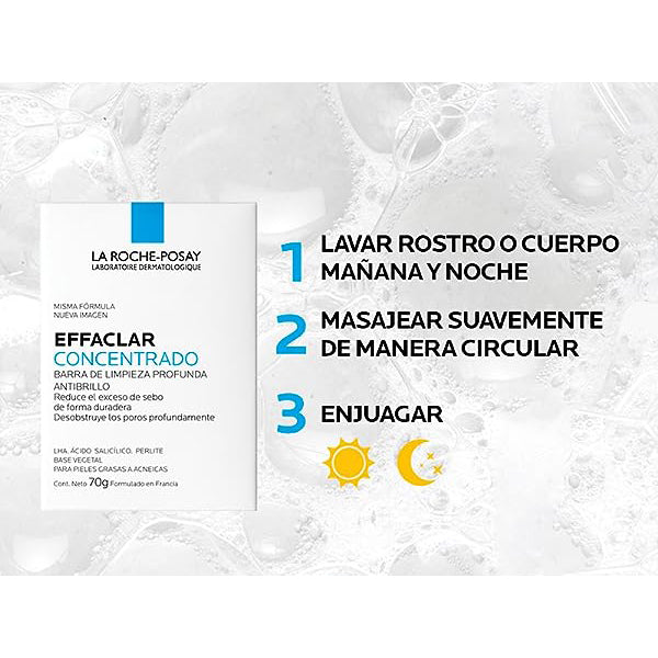 LA ROCHE POSAY Effaclar Concentrado Barra - Jabón de Limpieza Profunda Anti-Brillo, para Pieles Grasas con Imperfecciones Moderadas a Severas, 70gr.