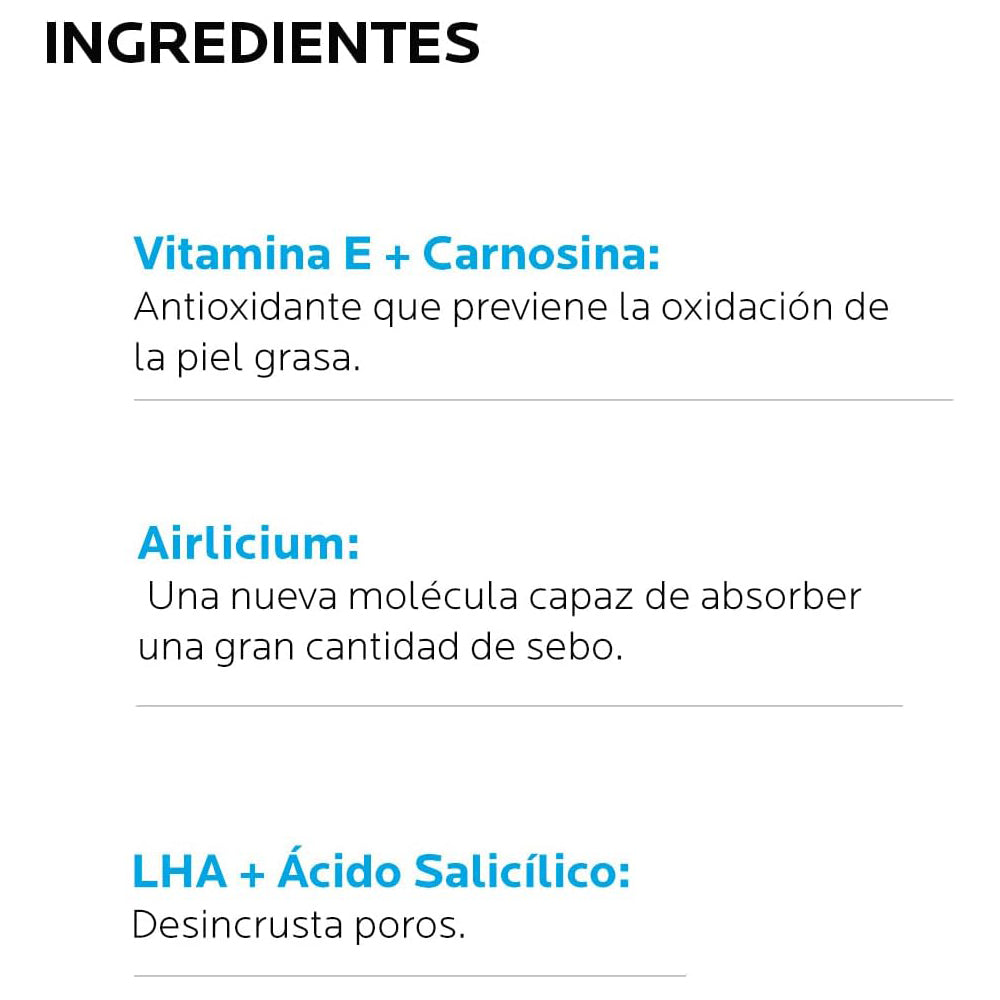 Reducción de Imperfecciones: Cuidado renovador para pieles grasas para prevenir la oxidación de los puntos negros recurrentes, con propiedades antioxidantes y antisebo de 8 horas. Minimiza visiblemente los poros y combate las imperfecciones recurrentes, proporcionando una piel más clara y uniforme.