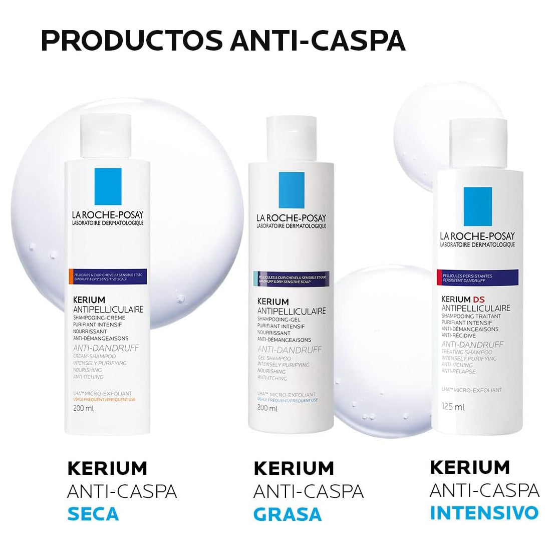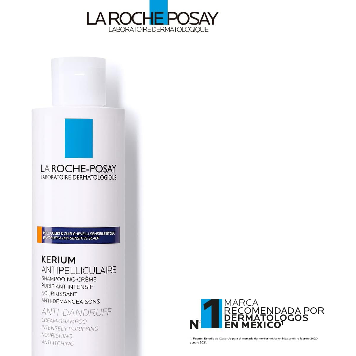 LA ROCHE POSAY Kerium Shampoo en Crema Anti-caspa para Cuero Cabelludo Reseco y Sensible, 200ml.