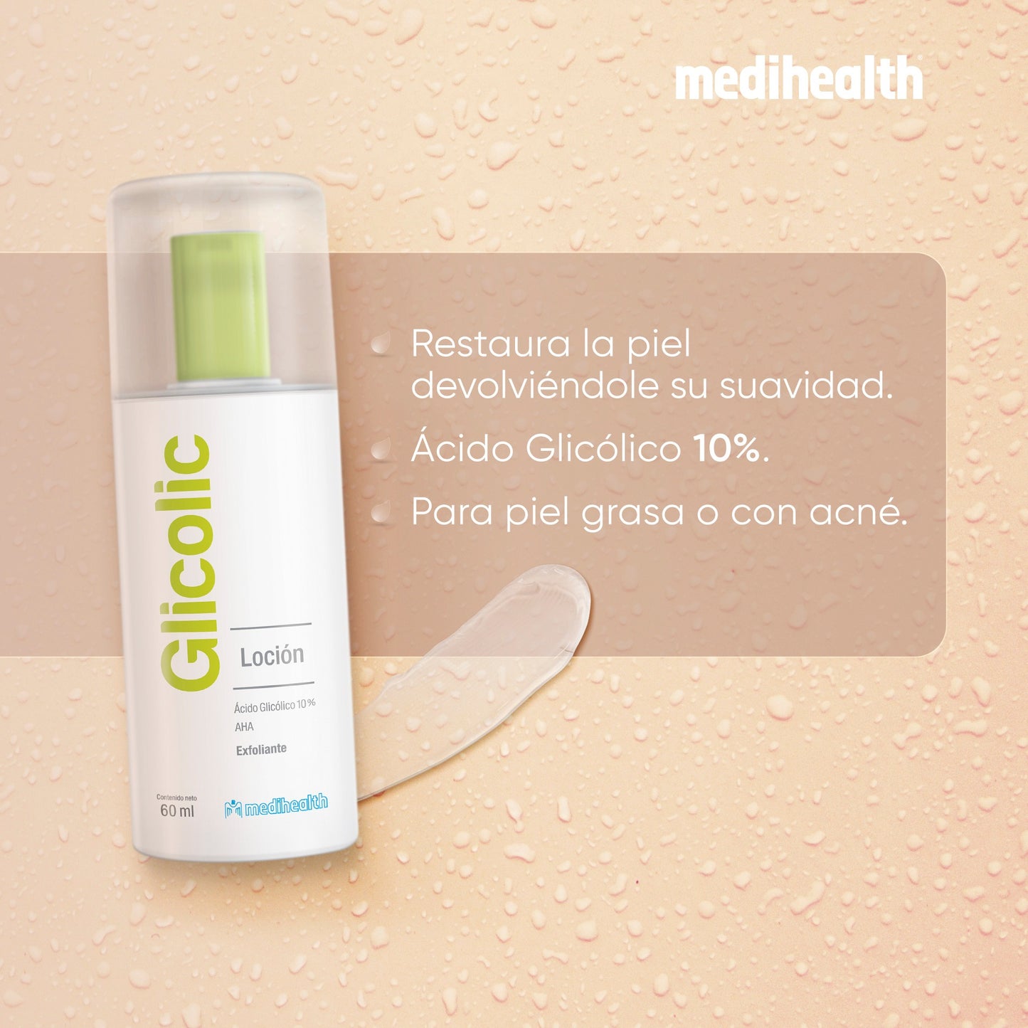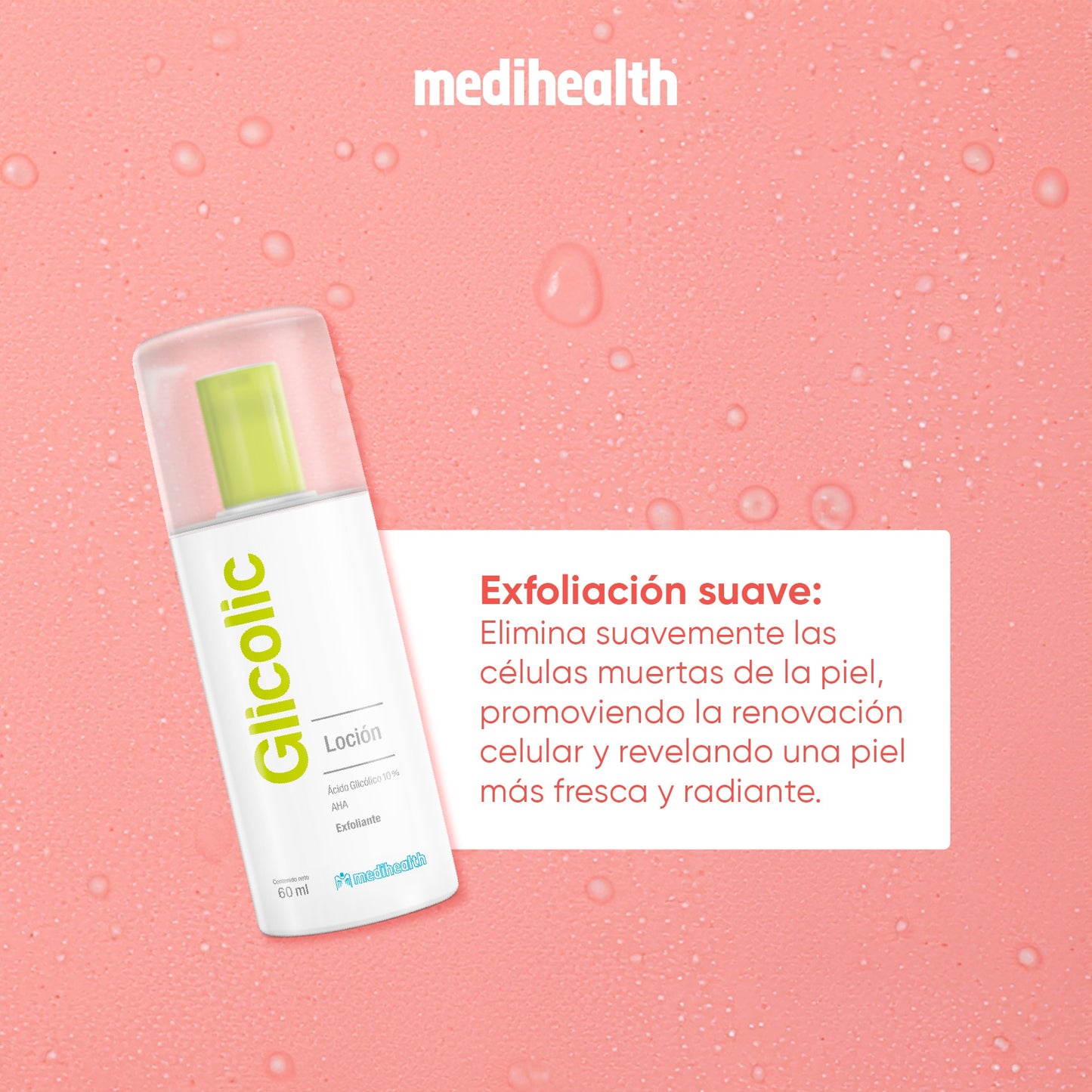 MEDIHEALTH Glicolic Loción es tu aliado en la lucha contra las imperfecciones y los signos de envejecimiento. No dejes pasar la oportunidad de tener una piel más luminosa, clara y juvenil.