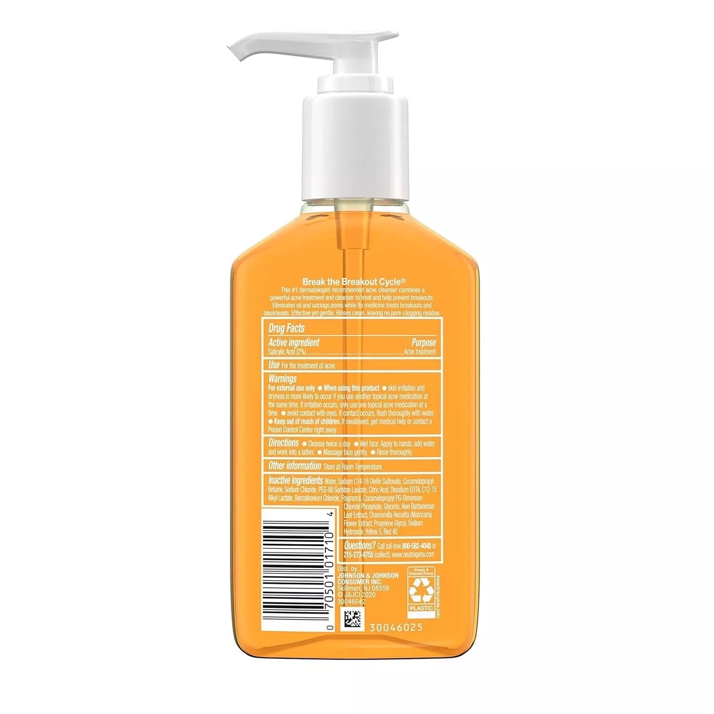 NEUTROGENA Oil-Free Acne Wash With Salicylic Acid Cleanser, Limpiador Facial, 177ml.