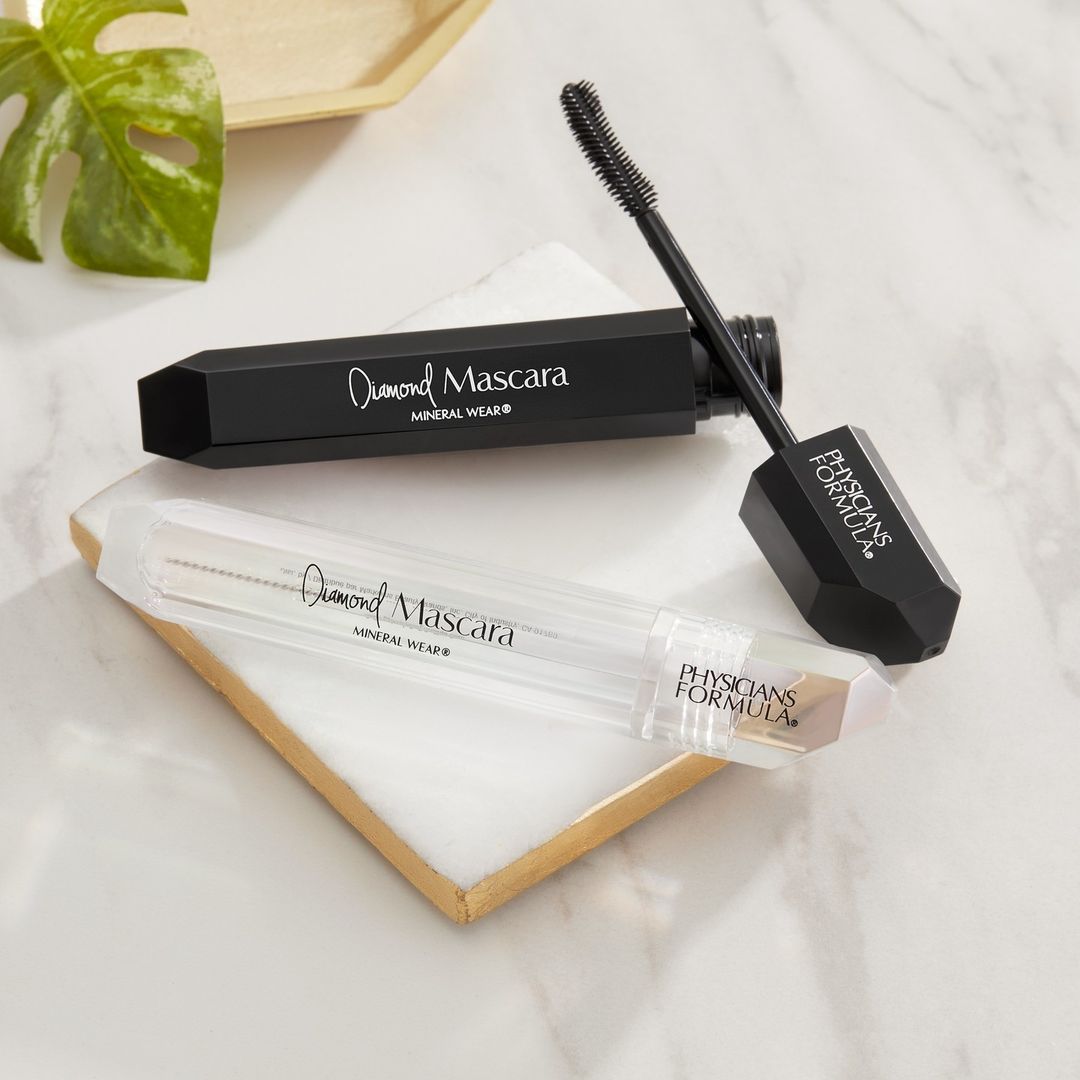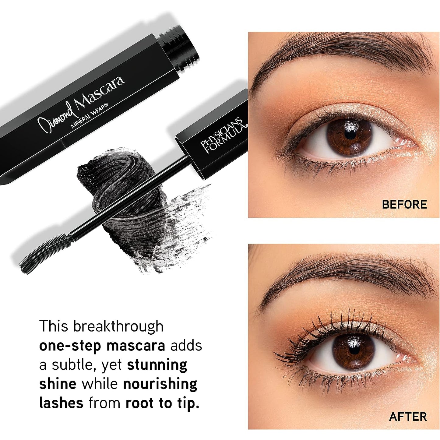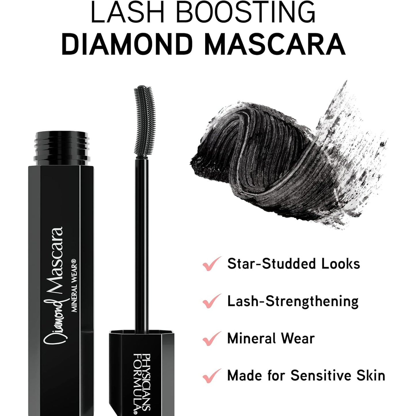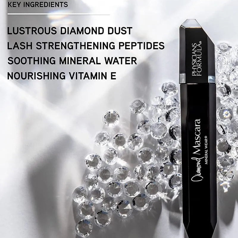 Máscara de pestañas con polvo de diamante. Tus pestañas brillan como diamantes literales con esta máscara Diamond que realza las pestañas. Esta innovadora máscara de pestañas de un solo paso, ultra nutritiva, está especialmente diseñada para alargar, levantar y separar las pestañas. Con auténtico polvo de diamante brillante, péptidos fortalecedores, agua mineral y vitamina E, esta máscara para pestañas añade un brillo sutil pero impresionante mientras las nutre desde la raíz hasta las puntas. Esta fórmula todo en uno acondiciona y cubre las pestañas para una apariencia pulida y con ojos abiertos.