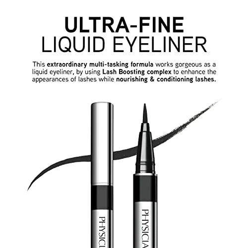 PHYSICIANS FORMULA Ultra-Fine Liquid Eyeliner Black, Delineador de ojos líquido de precisión + suero acondicionador potenciador de ojos 2 en 1, 0.03oz / 1ml