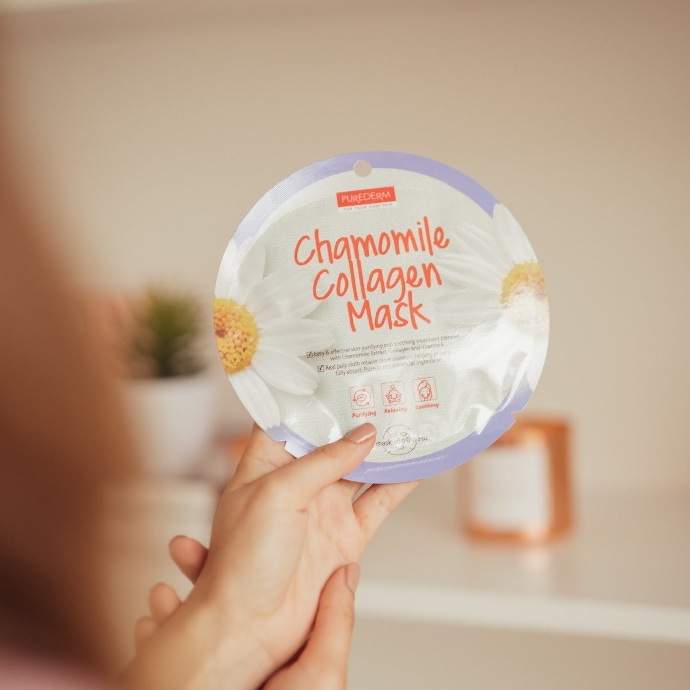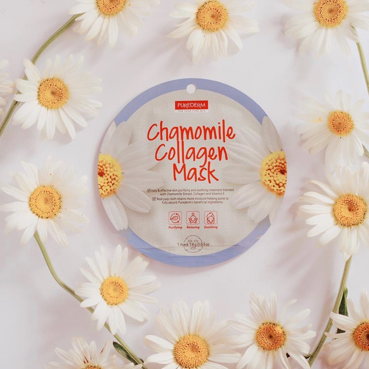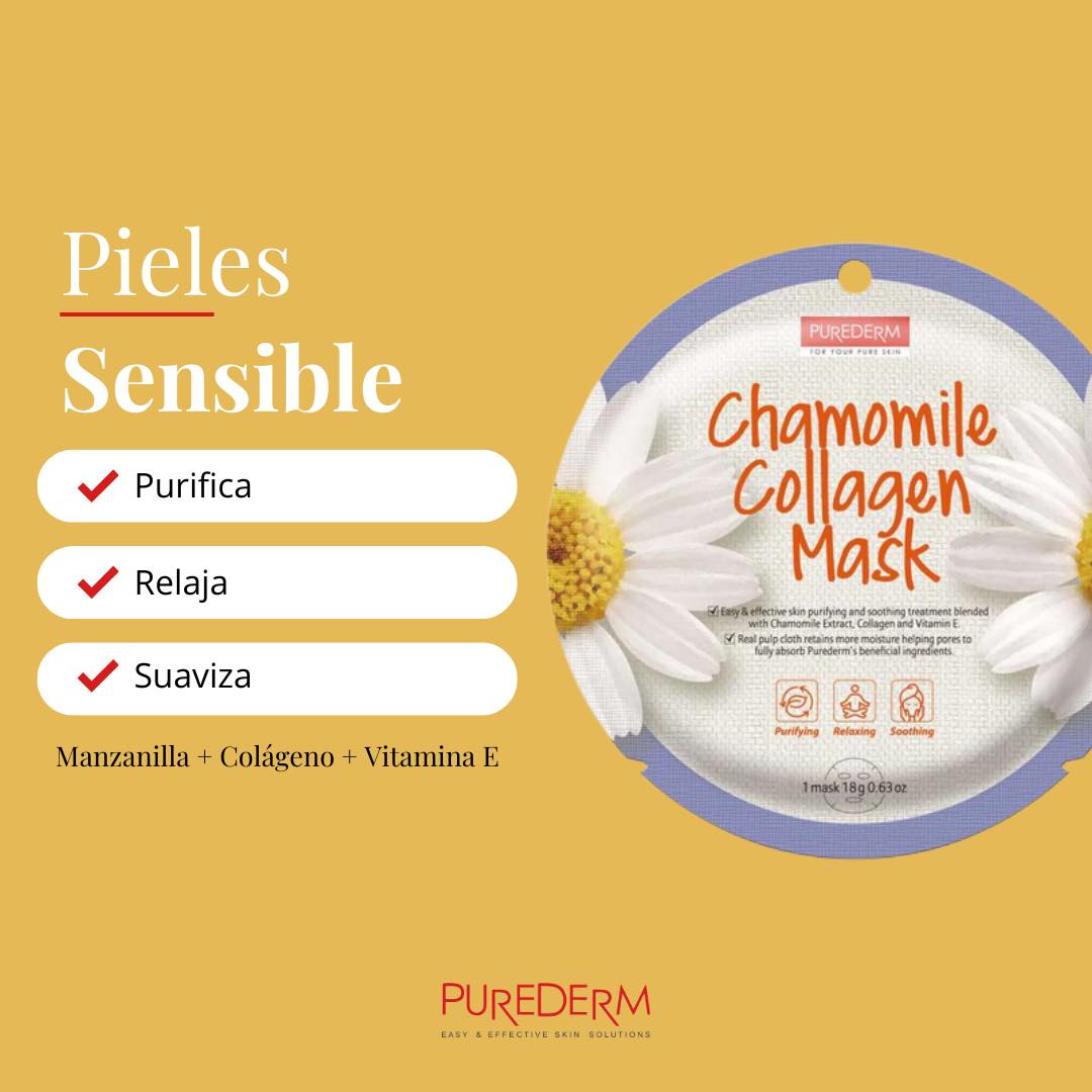 PUREDERM Chamomile Collagen Mask, Mascarilla de Manzanilla + Colágeno 18gr
