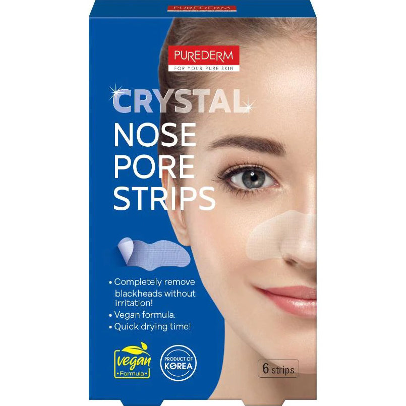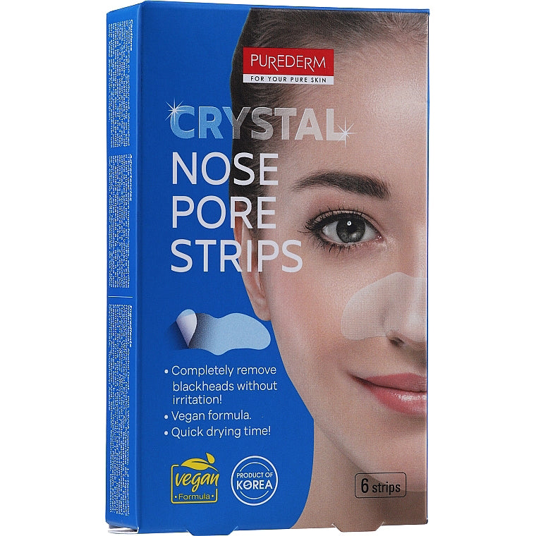 PUREDERM Crystal Nose Pore Strips, Bandas De Cristal Para La Nariz, 1 Paquete con 6 Bandas.