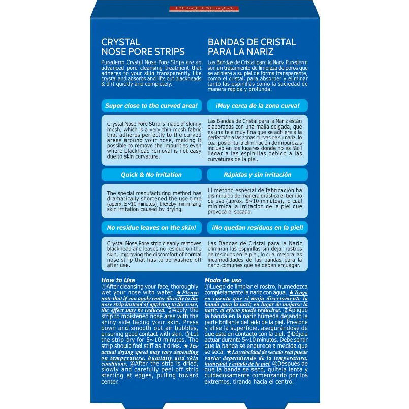 Las Bandas de Cristal para la Nariz Purederm son un tratamiento de limpieza de poros que se adhiere a su piel de forma transparente, como el cristal, para absorber y eliminar tantos las espinillas como la suciedad de manera rápida y profunda. El tratamiento toma 5-10 minutos y todos los puntos negros quedan eliminados!