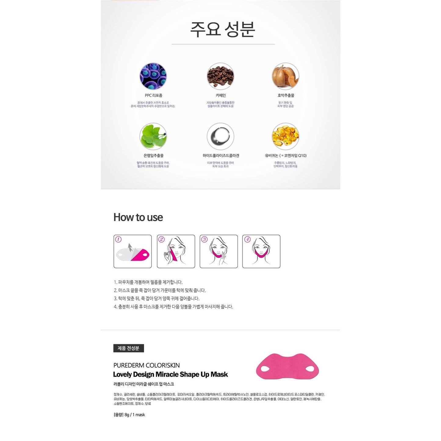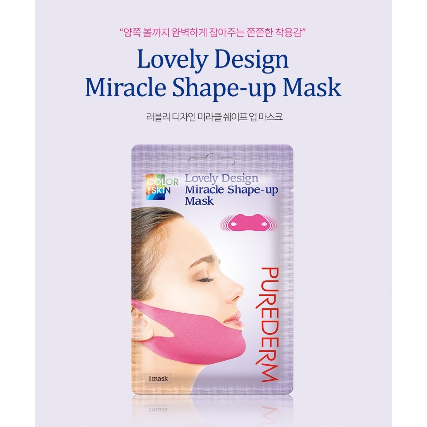 PUREDERM Lovely Design Miracle Shape-up Mask, Máscara moldeadora milagrosa de diseño encantador. 1 Pieza.