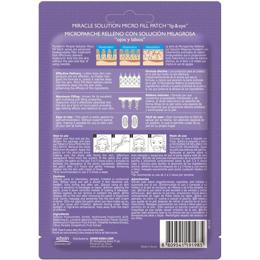 PUREDERM Miracle Solution Micro Fill Patch Lip&Eye, Microparche Relleno “Ojos y Labios” 1 Par.