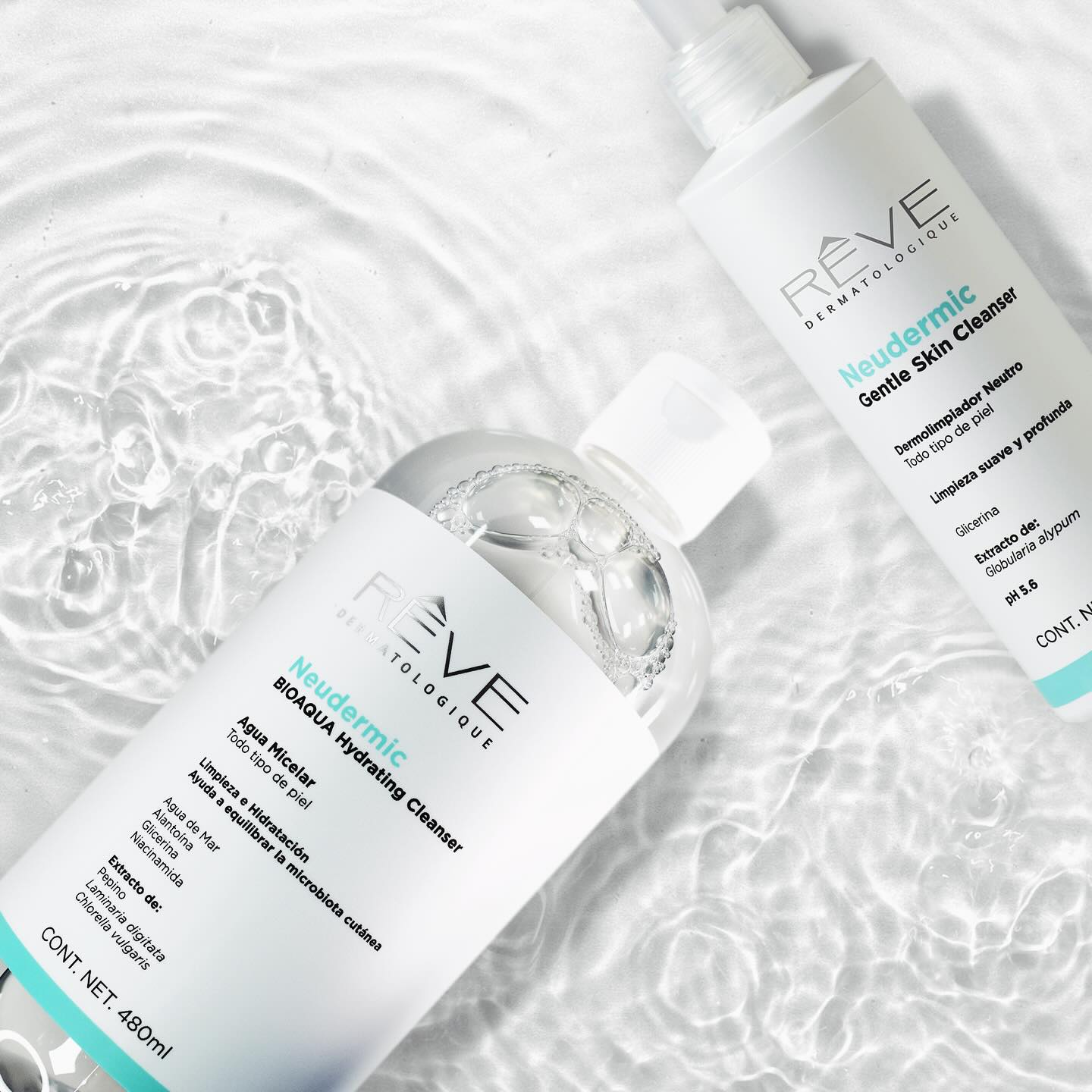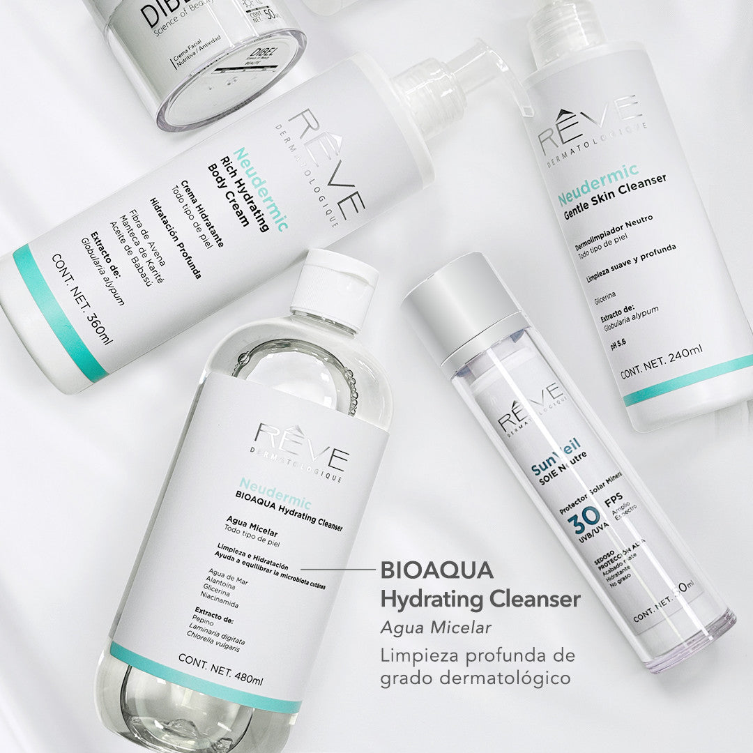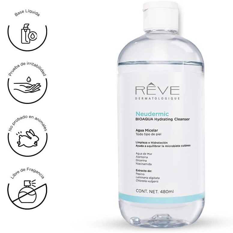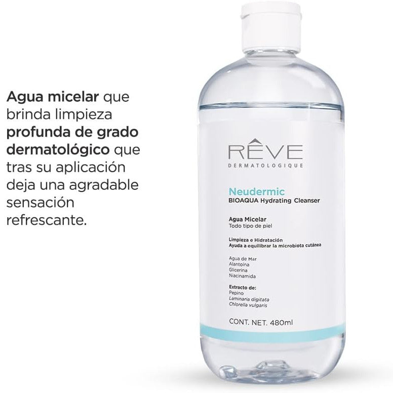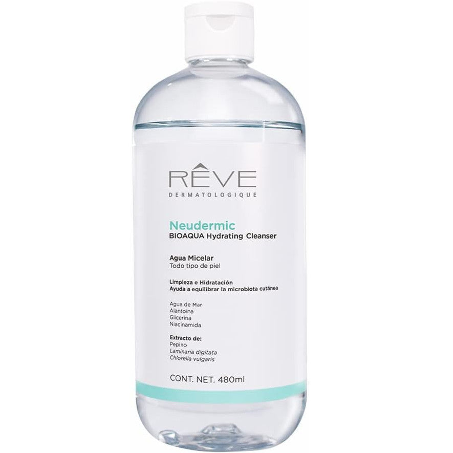 REVE Agua Micelar Neudermic BIOAQUA Hydrating Cleanser, Limpieza e Hidratación Facial, 480ml.