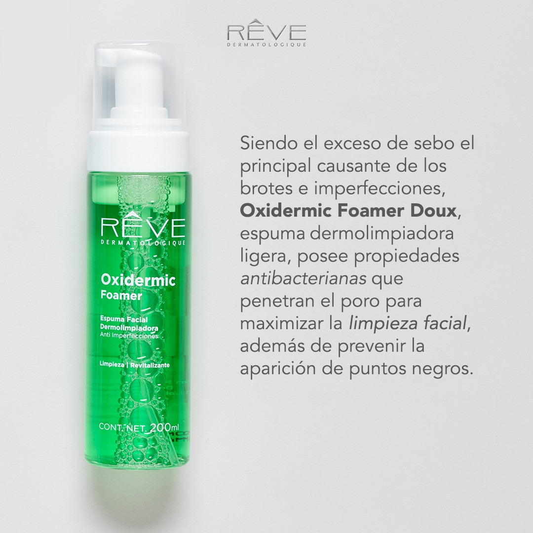 REVE Oxidermic Foamer Doux, Espuma Facial Dermolimpiadora Anti Imperfecciones, 200ml.
