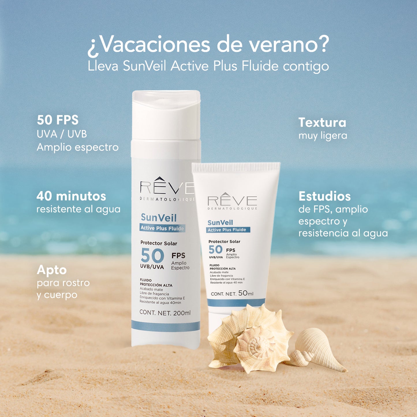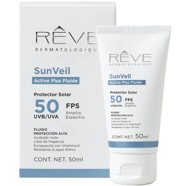 REVE SunVeil Active Plus Fluide, Protector Solar Ultra Fluido FPS50 UVA/UVB, Acabado Mate, Libre de Fragancia, 50ml.