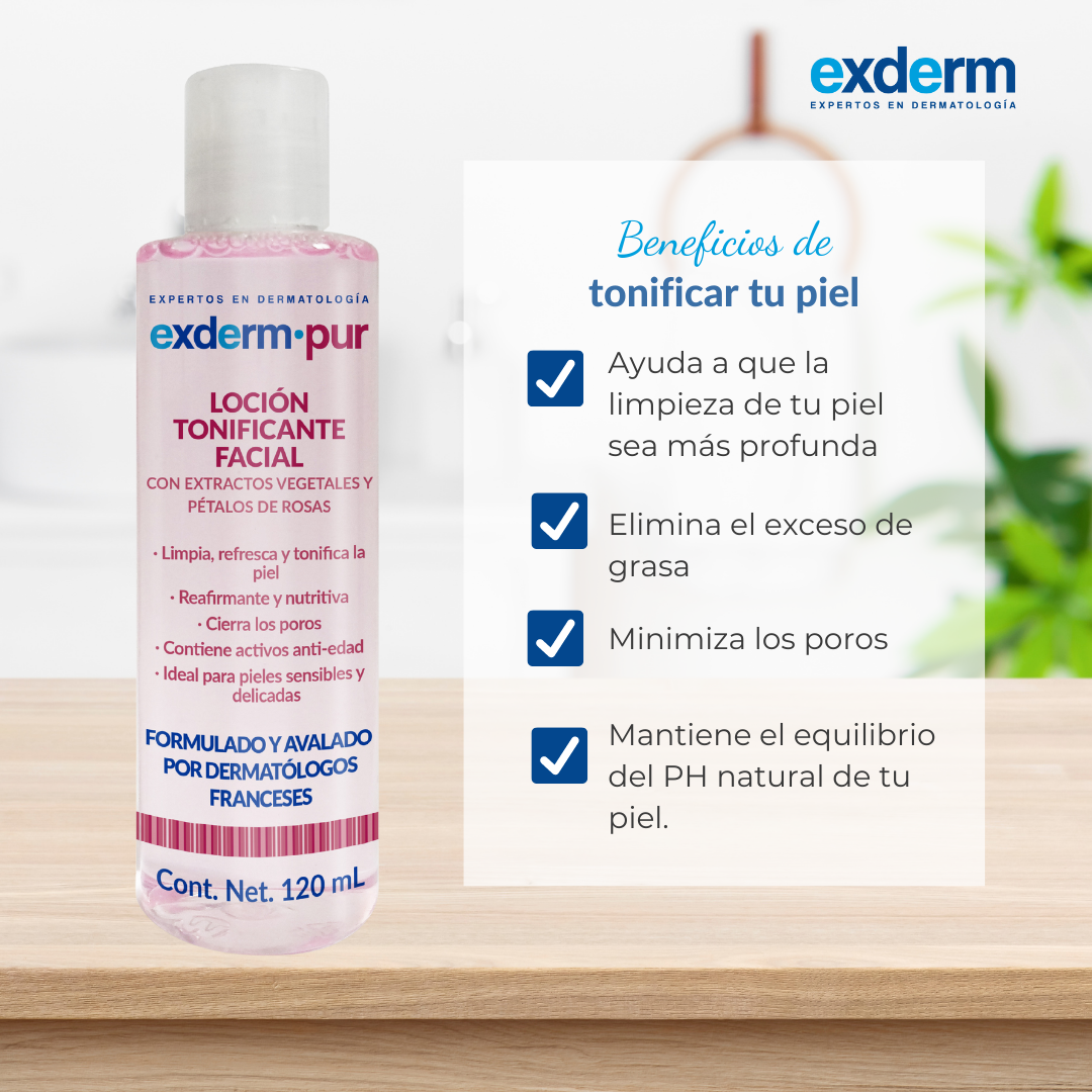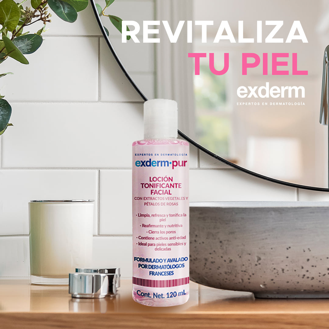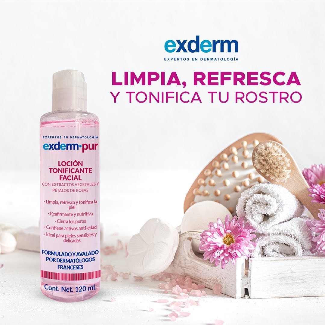 Exderm Pur Loción Tonificante Facial es más que un simple tónico: es tu arma secreta para lucir una piel impecable y rejuvenecida.
