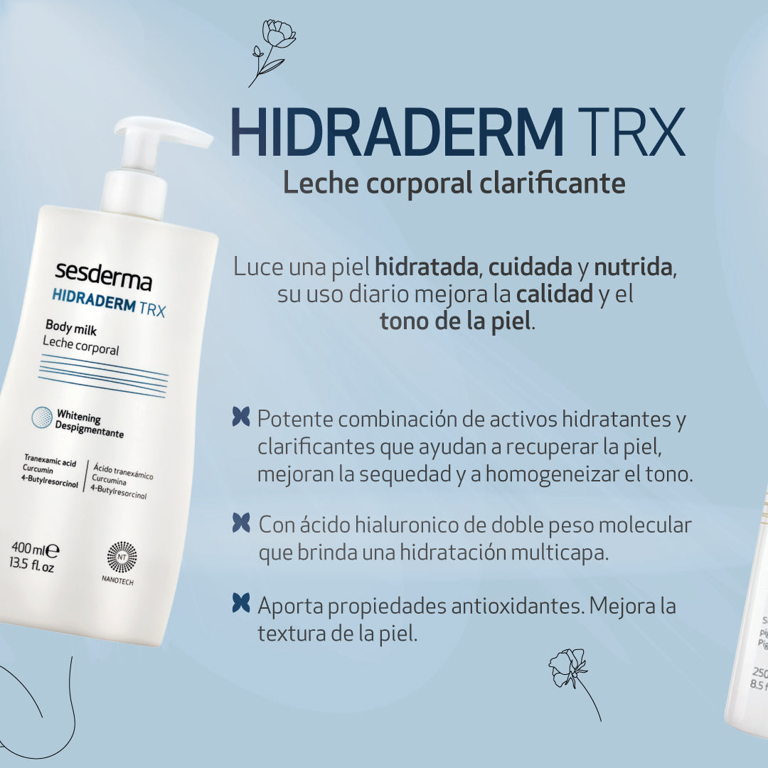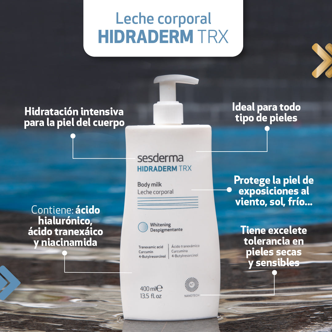 SESDERMA HIDRADERM TRX Leche Corporal es la solución definitiva para hidratar, iluminar y unificar tu piel, dejando atrás la sequedad y las manchas.