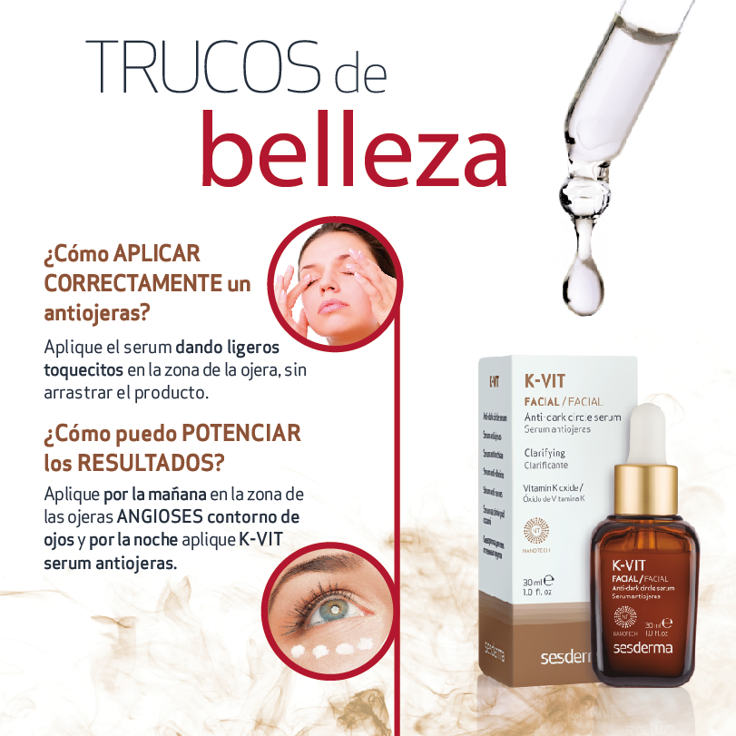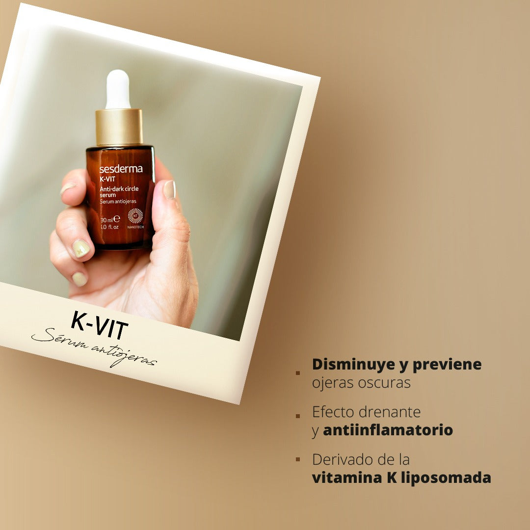Con SESDERMA K-VIT Serum Antiojeras 30ml, no solo eliminas esas sombras oscuras bajo tus ojos, sino que devuelves la luz y juventud a tu mirada.