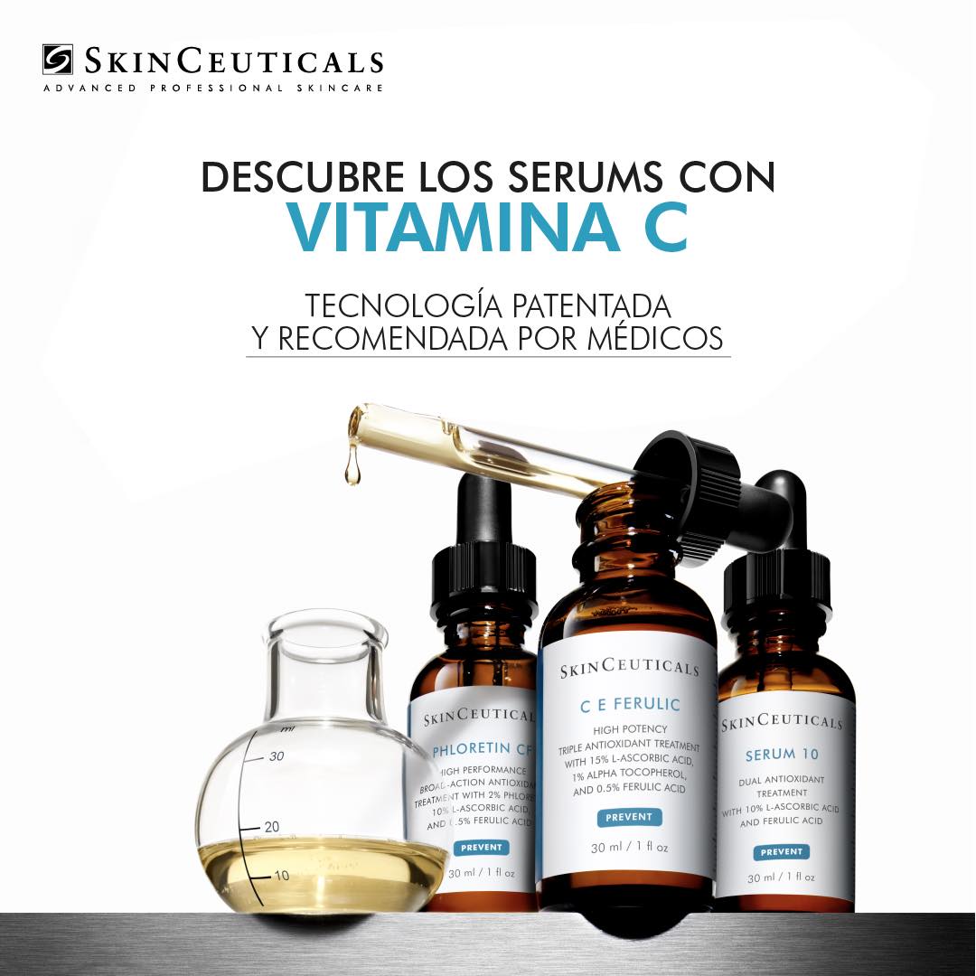 10% Vitamina C (Ácido Ascórbico): El antioxidante por excelencia, neutraliza los radicales libres y protege contra el estrés oxidativo, provee de visibles efectos contra los signos de la edad. La vitamina C de Skinceuticals es eficaz, estable y tiene una buena absorción. ¡Sus efectos perduran por 72 horas en la piel!