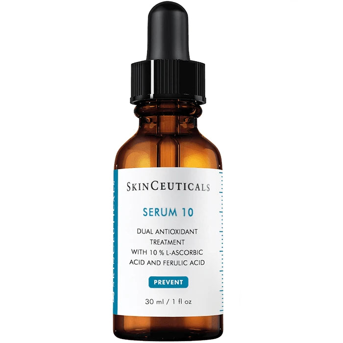 Sérum 10 utiliza un 10% de vitamina C pura (ácido L-ascórbico) y un 0.2% de ácido ferúlico para ayudar a neutralizar los radicales libres dañinos que contribuyen al envejecimiento de la piel debido al ambiente, y a los signos prematuros de envejecimiento causados por los radicales libres de la radiación UVA/UVB.