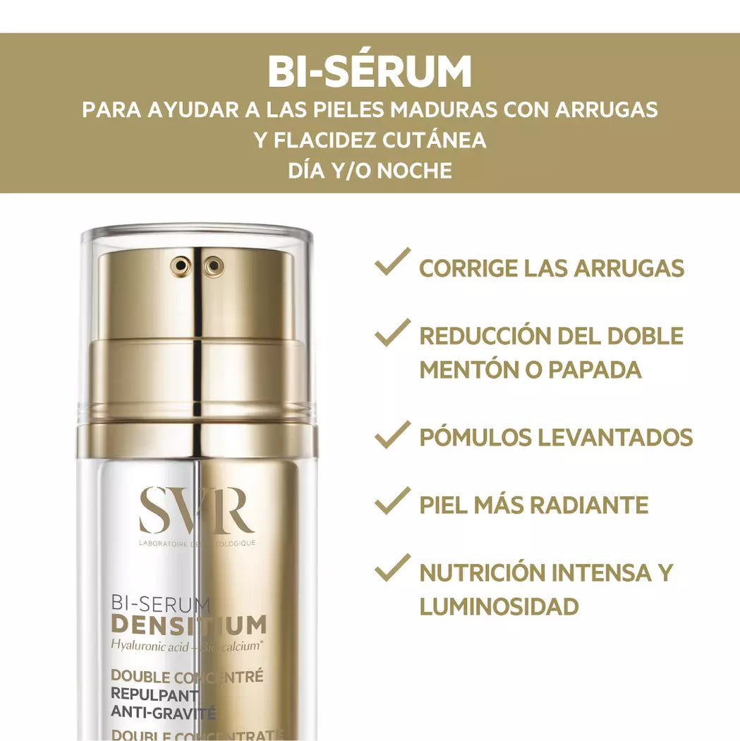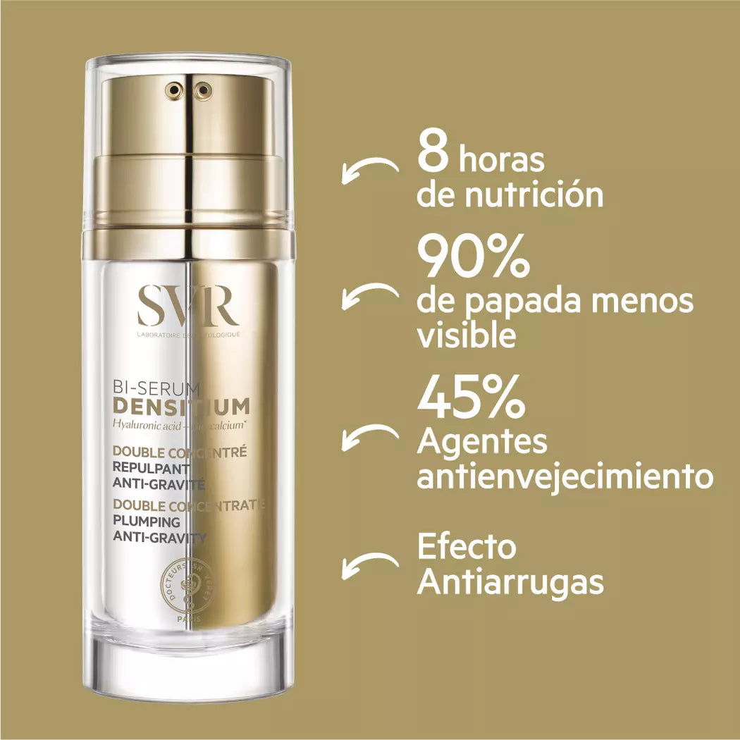 SVR Densitium Bi-Sérum es la respuesta que tu piel ha estado esperando. Actúa sobre los principales problemas de la piel madura: flacidez, arrugas y sequedad. Extremadamente potente, es el primer bisérum antiedad completo que desafía las leyes de la gravedad. Puedes estar segura de que estás invirtiendo en una solución de alto impacto.