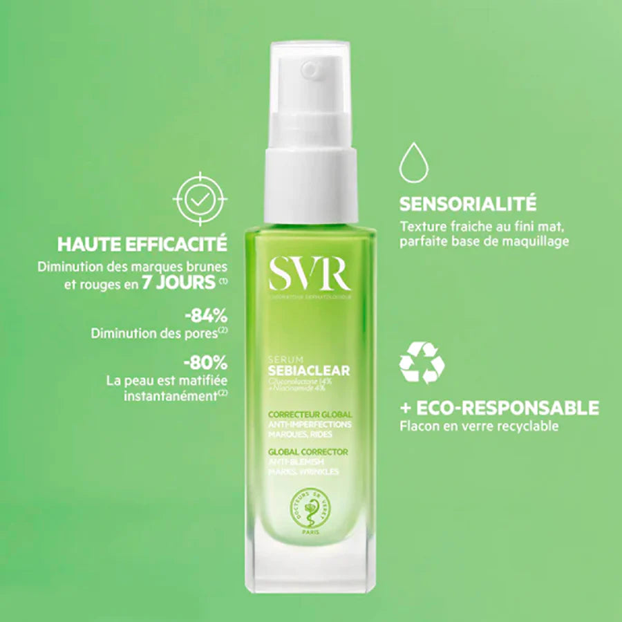 SVR Sebiaclear Sérum, Suero Facial Anti-imperfecciones, Anti-marcas y Antiarrugas, 30ml.