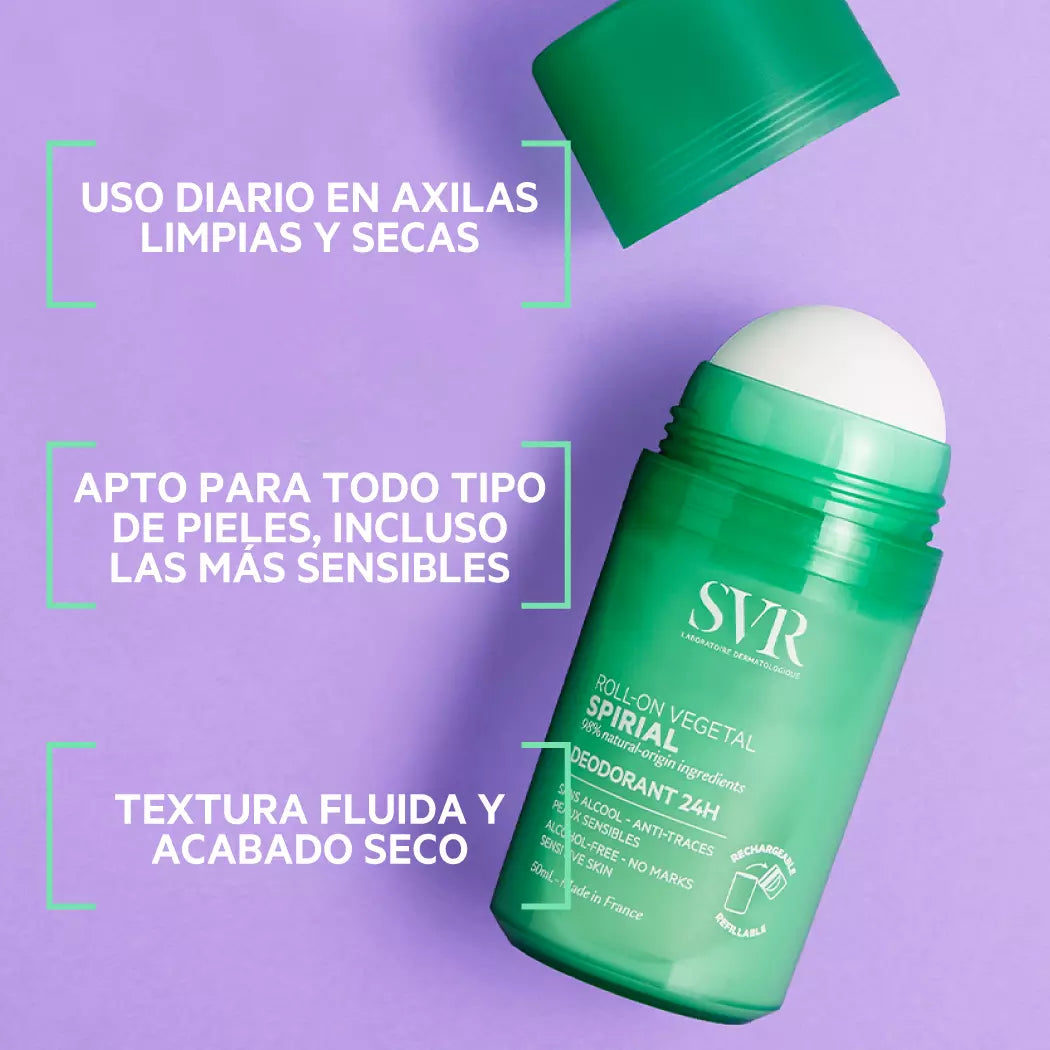 Con SVR Spirial Roll-On Végétal, tienes la frescura, seguridad y protección que siempre buscaste, en una fórmula 100% vegana y efectiva.