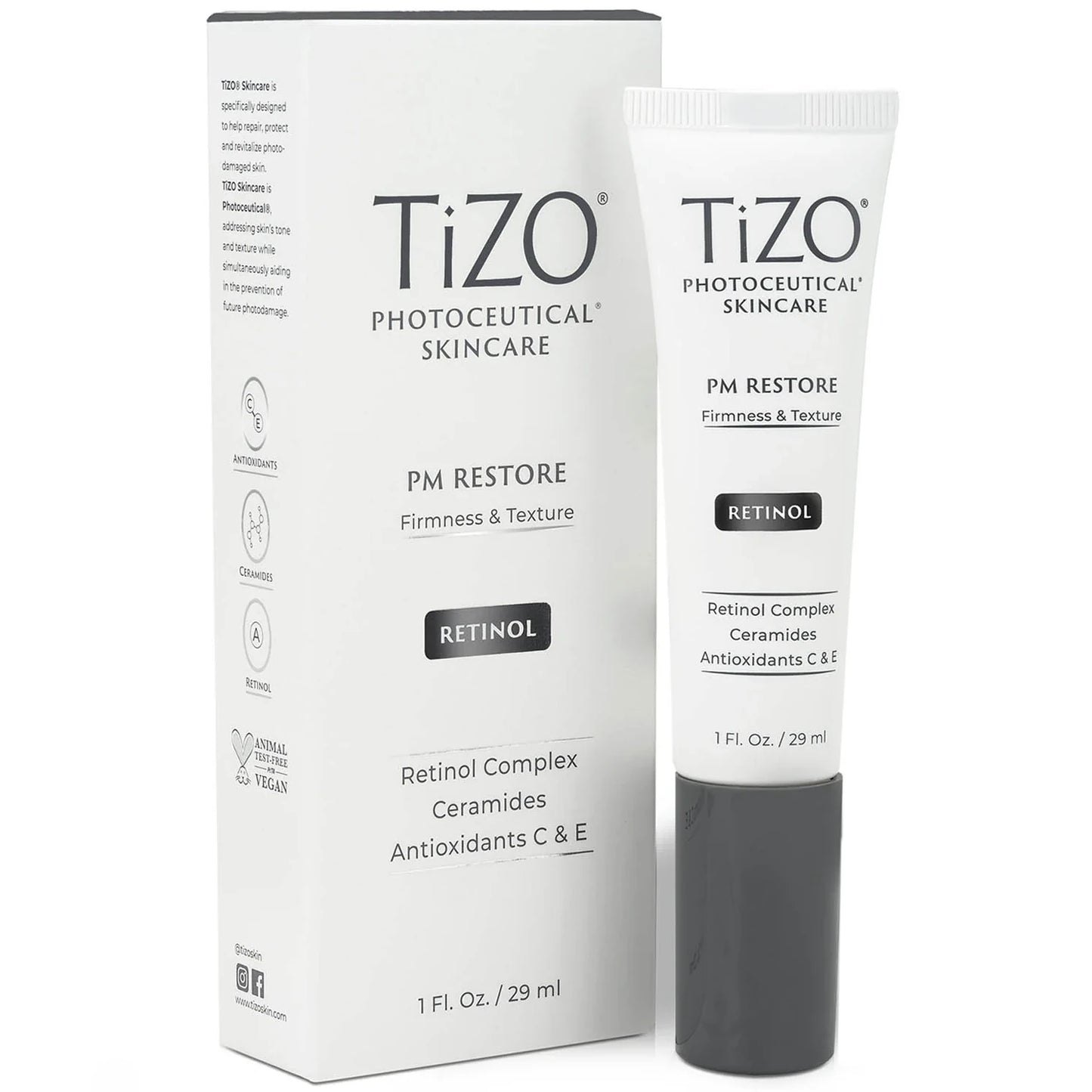 TIZO Photoceutical PM Restore con Retino, Ceramidas y Antioxidantes C y E, Potente Sérum Facial Antiedad, 29ml.