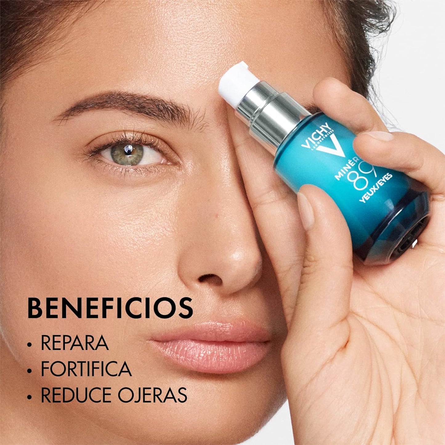 VICHY Minéral 89 Contorno de Ojos está diseñado para revitalizar y proteger tu contorno de ojos, combatiendo signos de fatiga mientras hidrata y fortalece la piel.