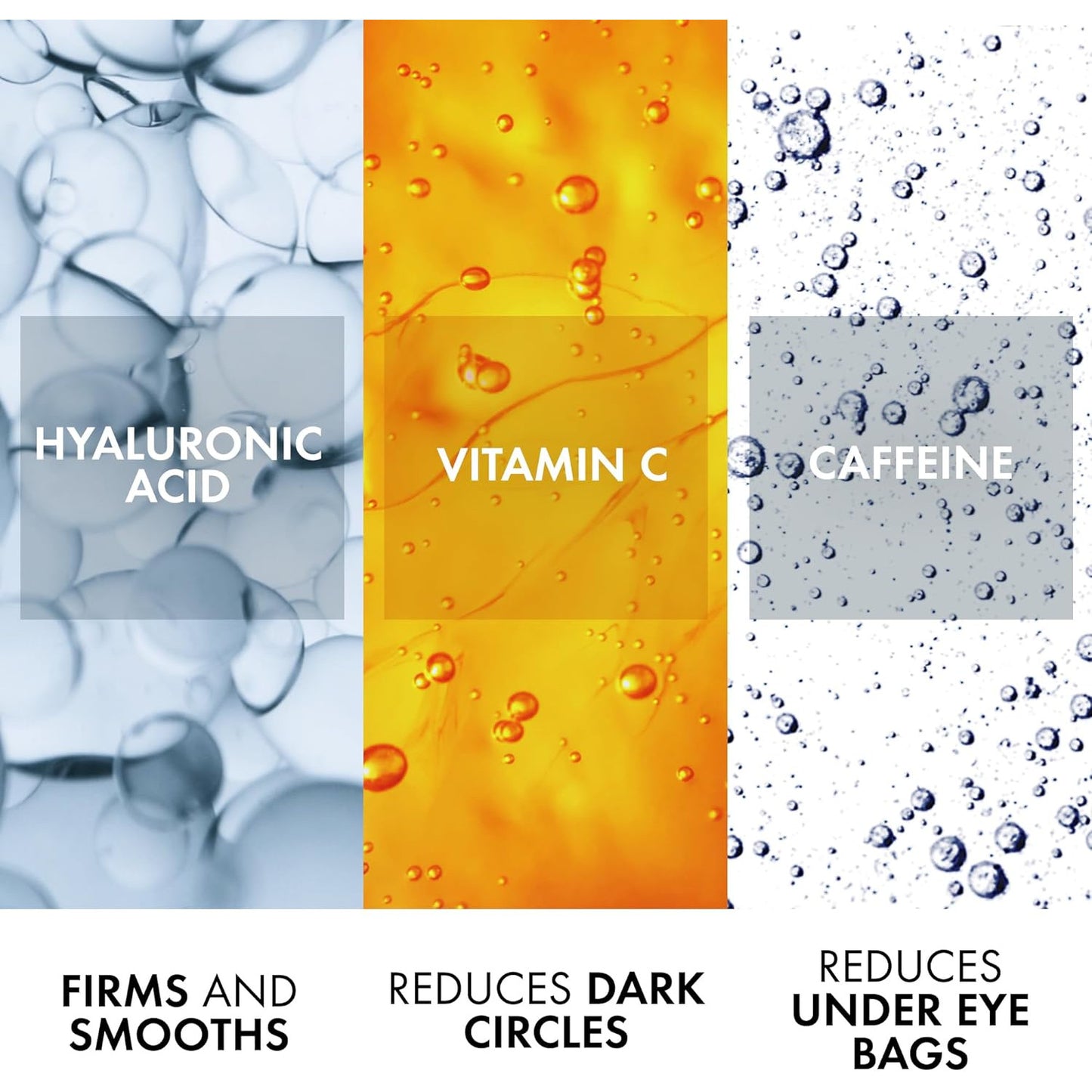 Cafeína: Estimula la microcirculación, ayudando a reducir visiblemente las bolsas y ojeras.