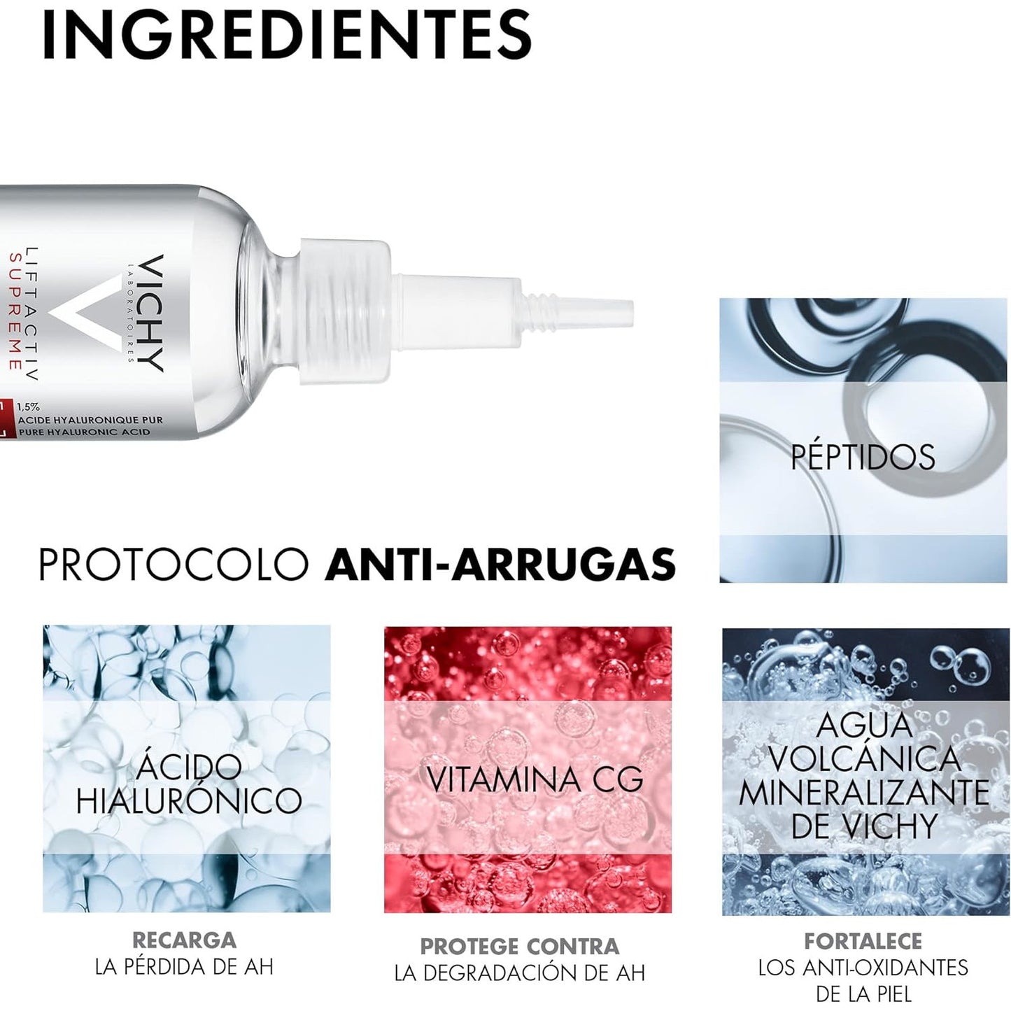 Con Vichy Liftactiv Supreme HA Epidermic Filler, esa visión puede ser tu realidad. Este sérum es el arma secreta para quienes buscan reducir arrugas profundas, restaurar elasticidad y lucir una piel radiante. Si has buscado "mejor sérum para arrugas", "ácido hialurónico puro" o "rejuvenecimiento facial efectivo", tu búsqueda termina aquí.
