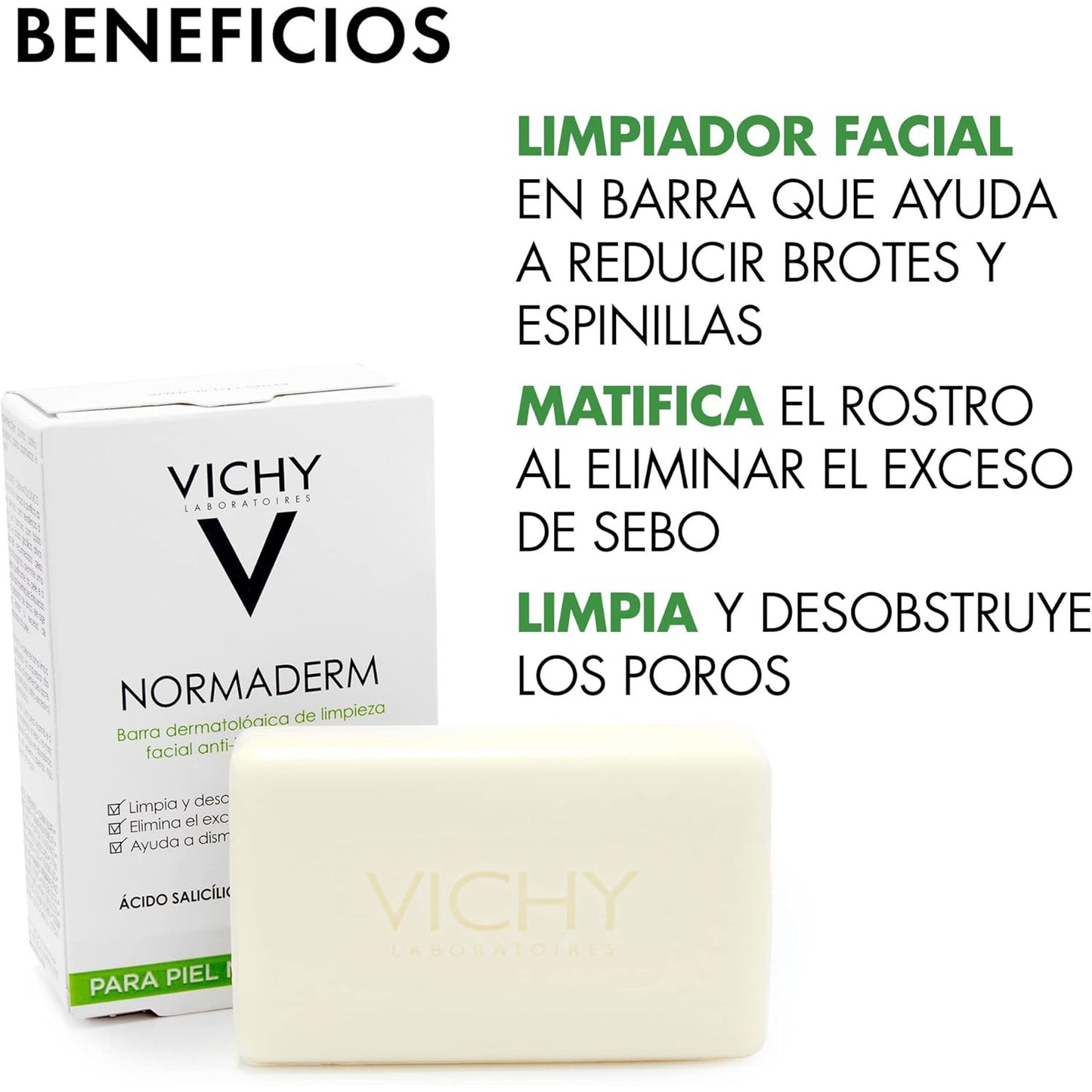VICHY Normaderm Jabón Limpieza Facial Profunda y Eficaz para Pieles Grasas.